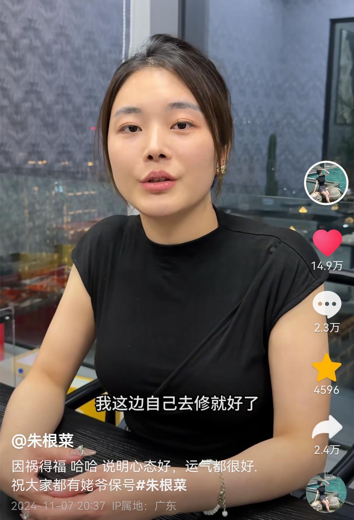 朱根菜回應稱整件事情不是劇本,事發時車上有3個孩子,還有她的姐姐,她不會拿孩子和親人的生命開玩笑。