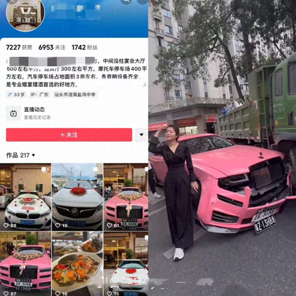 比如有網友懷疑朱根菜的車是租的,因爲在某個婚慶公司的賬號裏看到了這輛車。