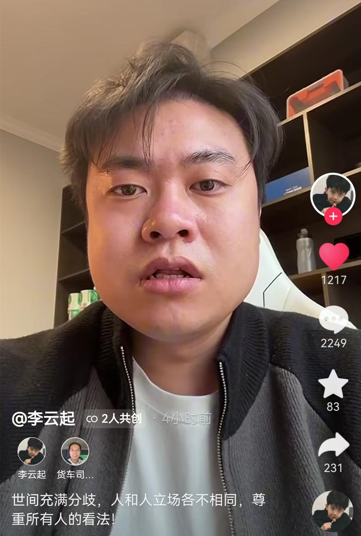 在朱根菜回應之後,貨車司機的大兒子也發視頻回應了。