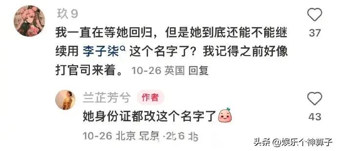因爲以前經歷過糾紛,有粉絲擔心是否還會用李子柒這個名字更新作品,特意留言向其好友詢問,好友透露,李子柒已經把身份證都改成這個名字了。