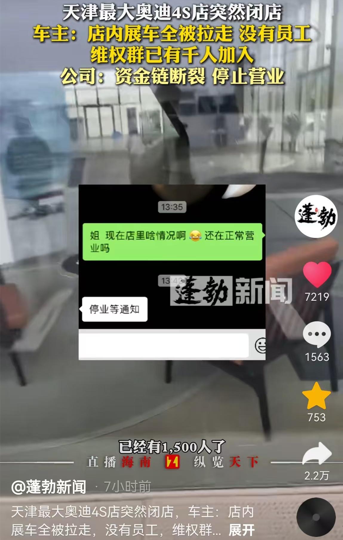 天津最大奧迪4S店爆雷!大廳站滿維權人,超1500人受害,原因曝光