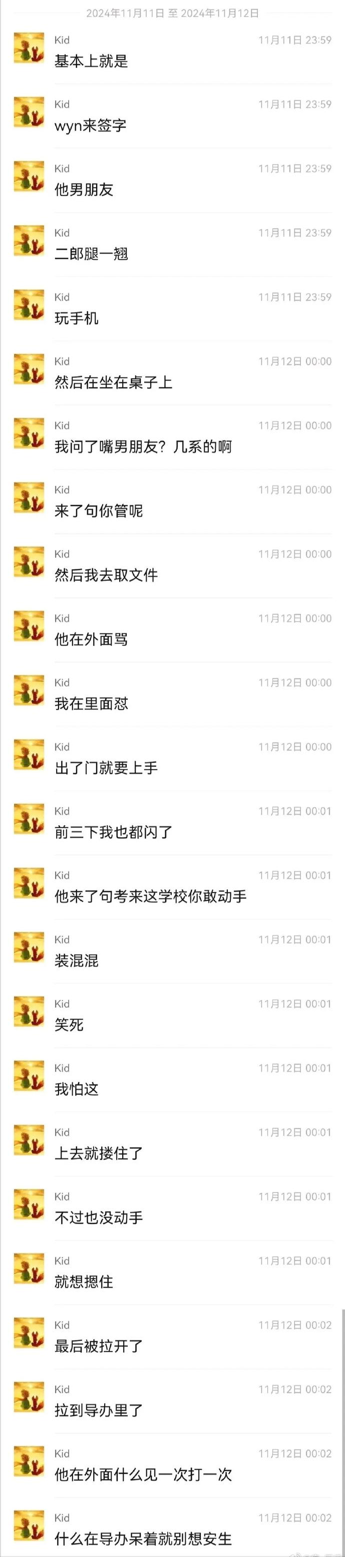 彼時他在旁邊玩手機,涉事輔導員卻過來踹了他一腳,說不許蹺二郎腿。