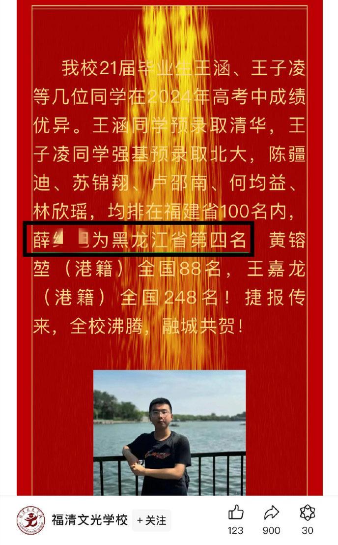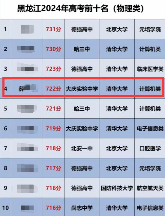 到了2024年的高考,也就是今年的高考,他更不得了,考了722分,是黑龍江省的第四名,是大慶市的狀元。