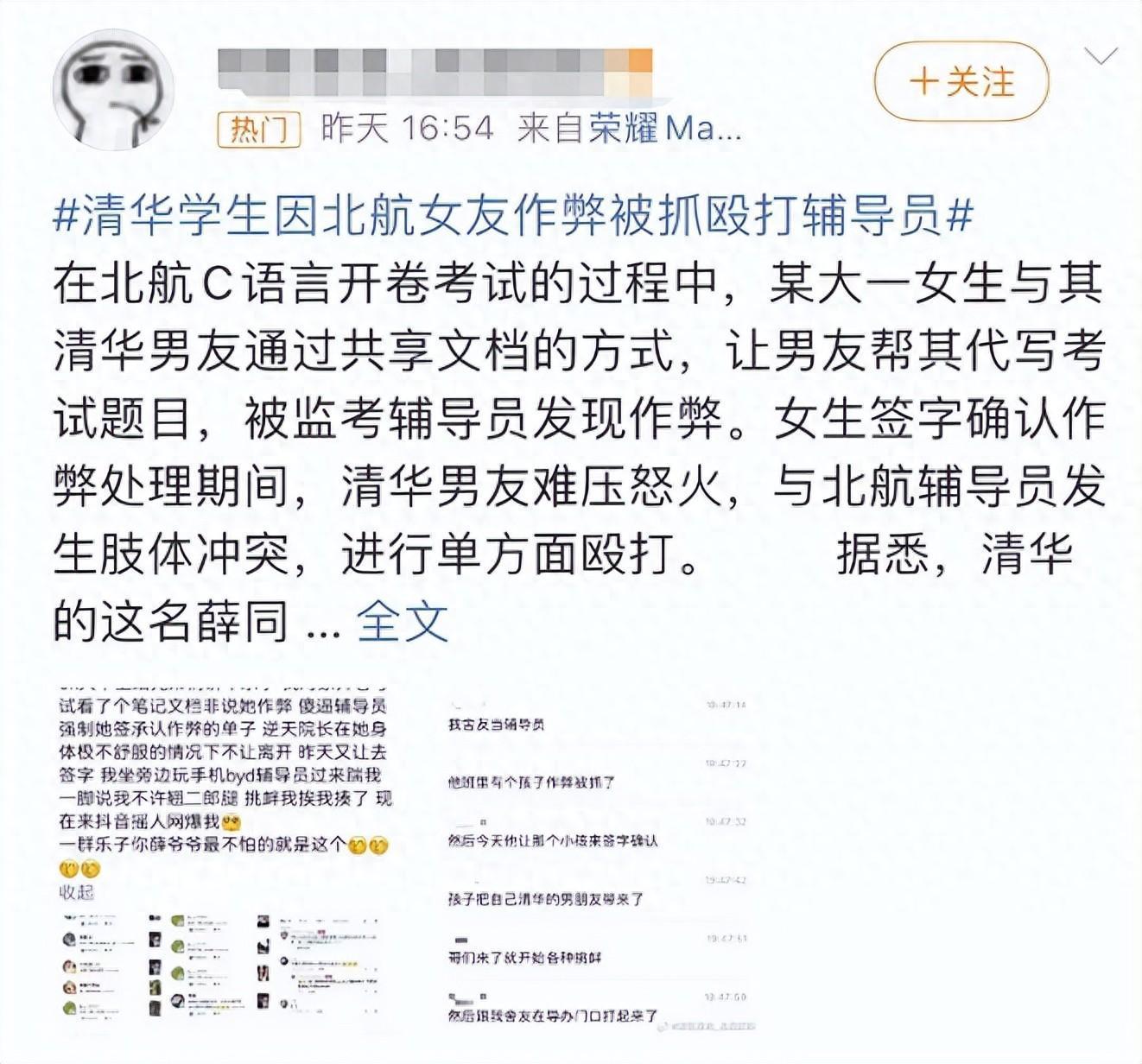曝北航女生作弊被抓,清華男友暴打輔導員,照片被扒,是大慶狀元
