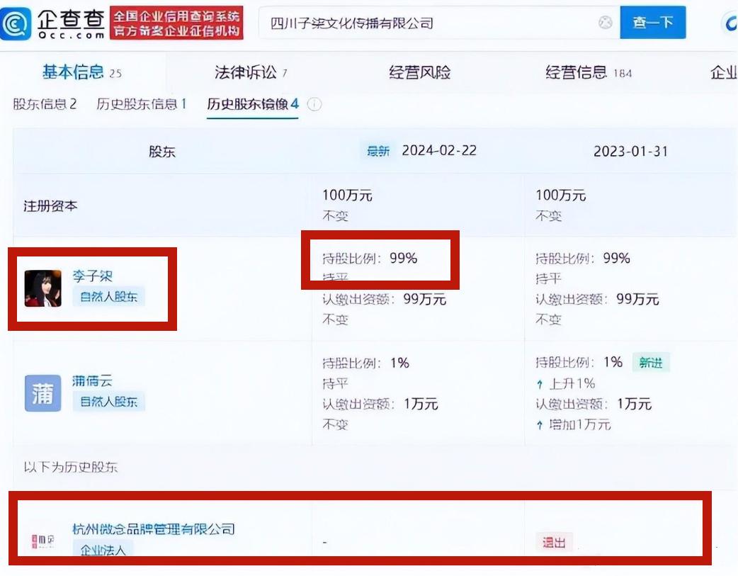 微念退出了李子柒的四川子柒文化傳播有限公司,李子柒的股份從49%漲到了99%,她真正的掌控了自己的公司。