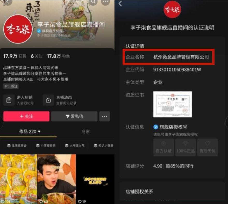 微念目前還持有李子柒品牌特定類目長期獨佔許可經營權。