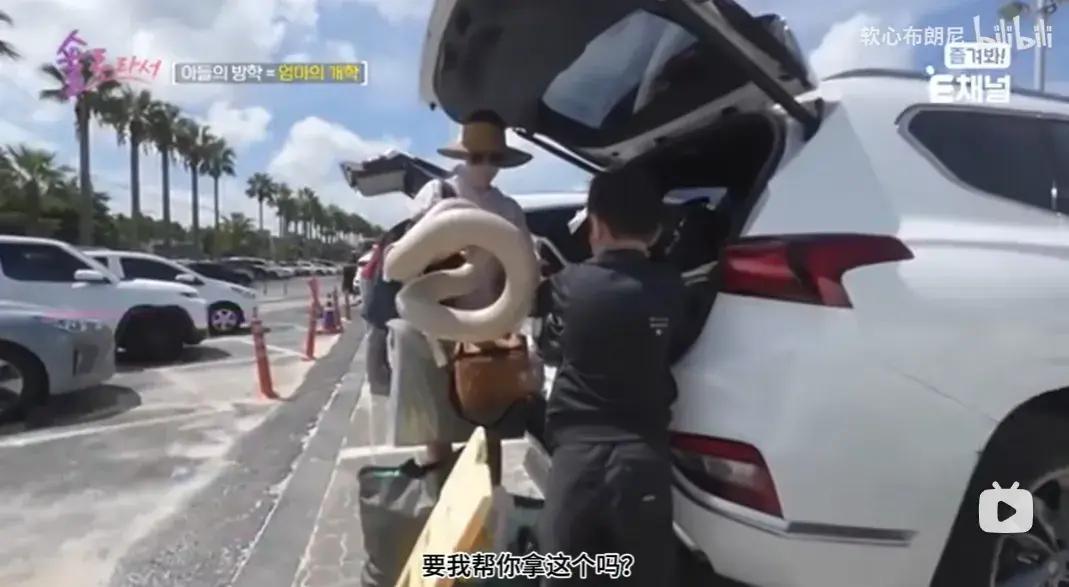 蔡琳帶他去海邊露營,帶了一後備箱的裝備,蔡琳大包小包拎在手上,珉宇看到了,主動過去幫着拿東西。
