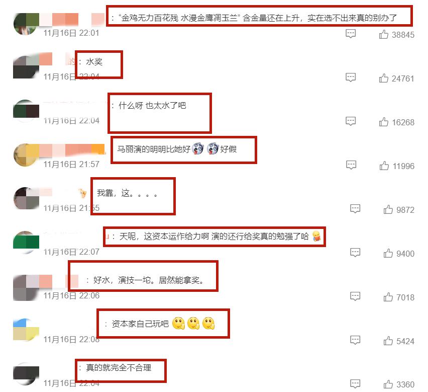 但是,還是很多網友認爲李庚希的演技不足以獲獎,還說她是資源咖,靠關係得獎,以至於連累金雞獎被罵是水獎。