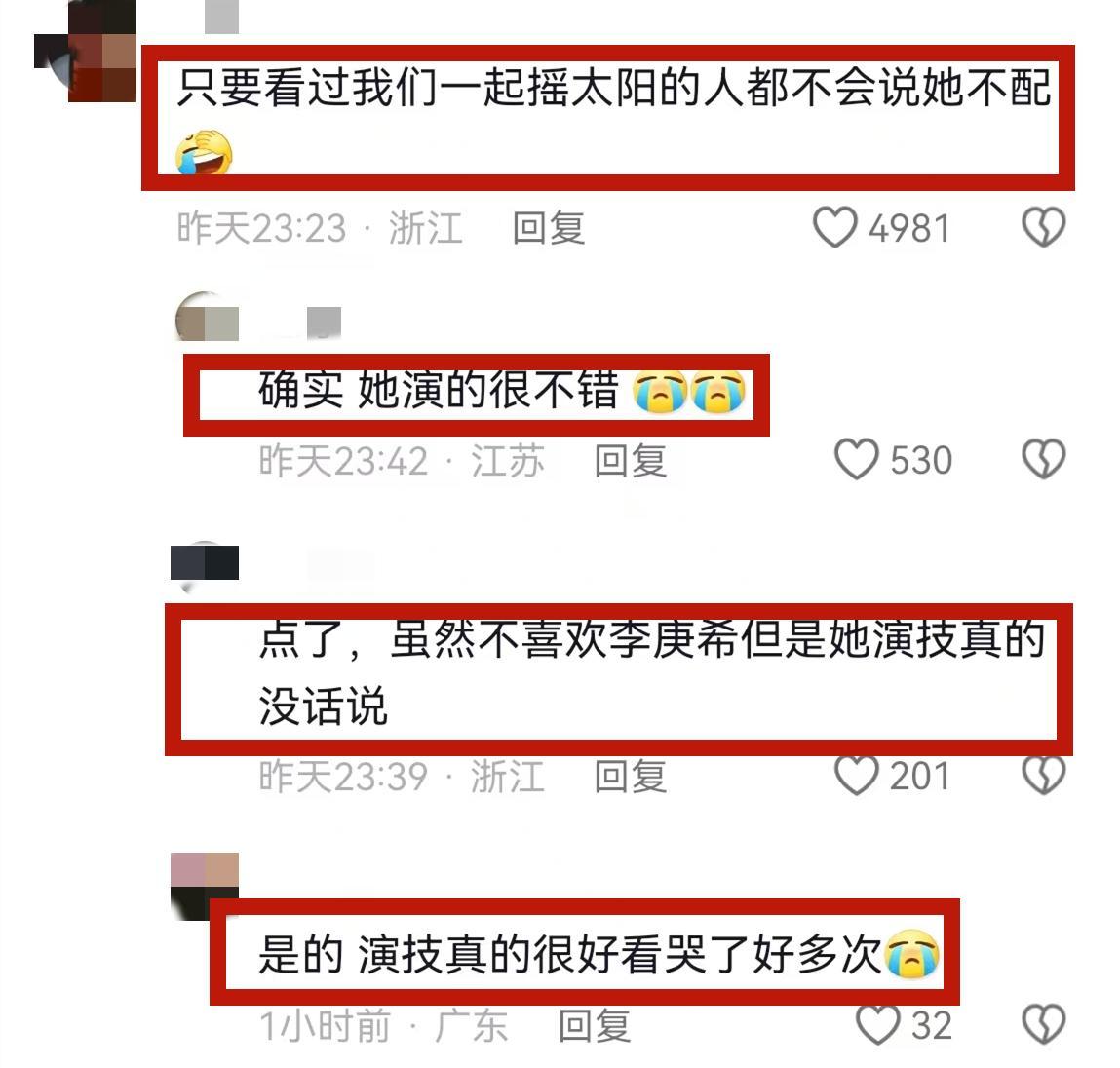 希望李庚希繼續提升演技,爲觀衆帶來更多優秀的作品。