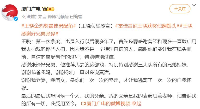在發表獲獎感言時,王驍感謝了很多人。