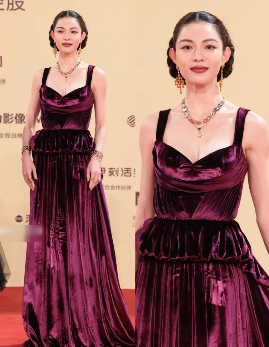 紅毯亮相和提着雲朵雨傘的屈楚蕭同框,選了件紫色單肩紗裙,和她之前“帶點小攻擊性”的鬼馬少女風格差別還挺大。