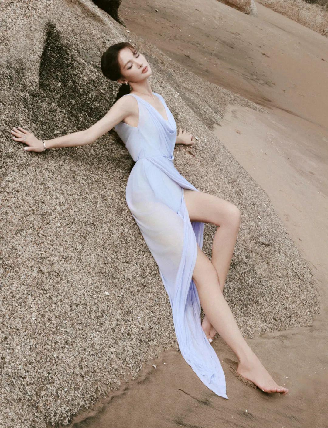 海邊這組大片,金晨還露出了修長白皙的腿,也算是低調秀了一把身材。