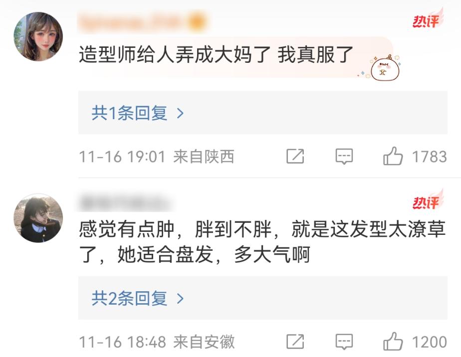 而披髮也讓她看起來沒有精氣神,表情管理也莫名有點苦相。