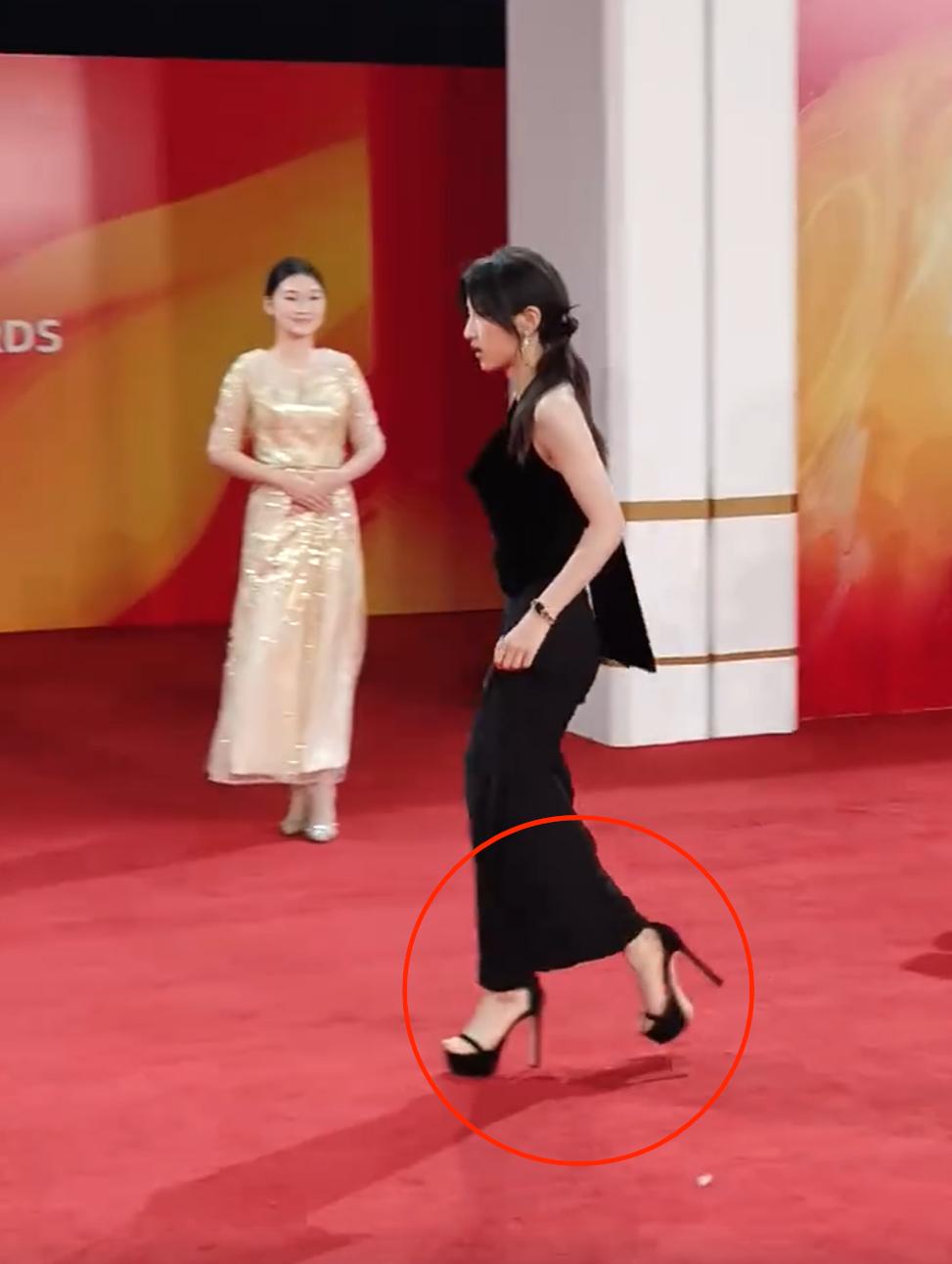 從側面來看,她穿的鞋很高,鞋跟目測足有10cm。