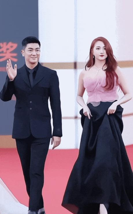 憑藉爽劇《墨雨雲間》有了些觀衆緣的劉些寧,紅毯造型和李宛妲有些撞了,都是同色系的公主裙。