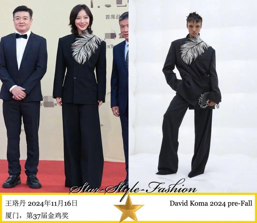 對比秀場模特,王珞丹身上這件還做了掐腰處理,顯身形的同時,也更加板正。