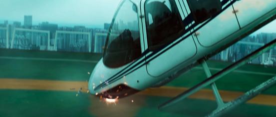 緊接着一架剛剛起飛的直升機,在空中因爲打鬥而失控墜落。