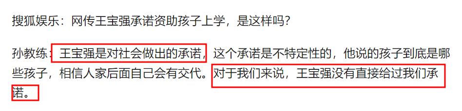 孫教練還說王寶強曾說資助《八角籠中》的小演員,但是沒說要資助的是哪些孩子,也沒有對他和他帶着的4個小演員做出直接的承諾。