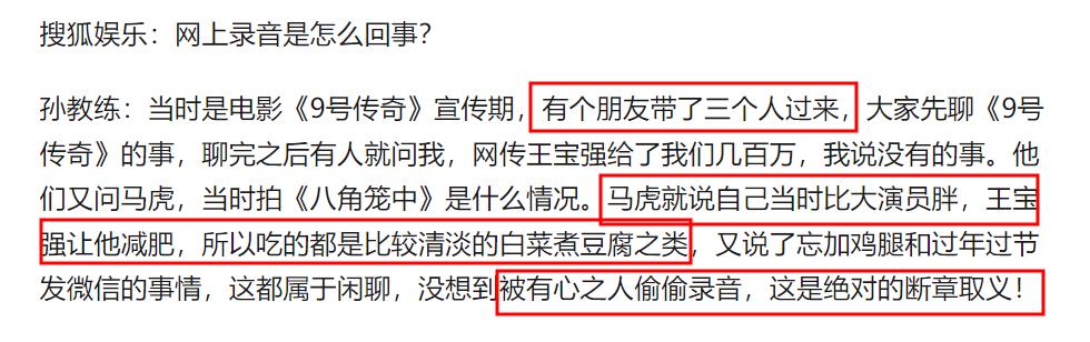 事情鬧大後,孫教練接受了媒體採訪,孫教練直言網傳錄音系偷錄,被斷章取義。