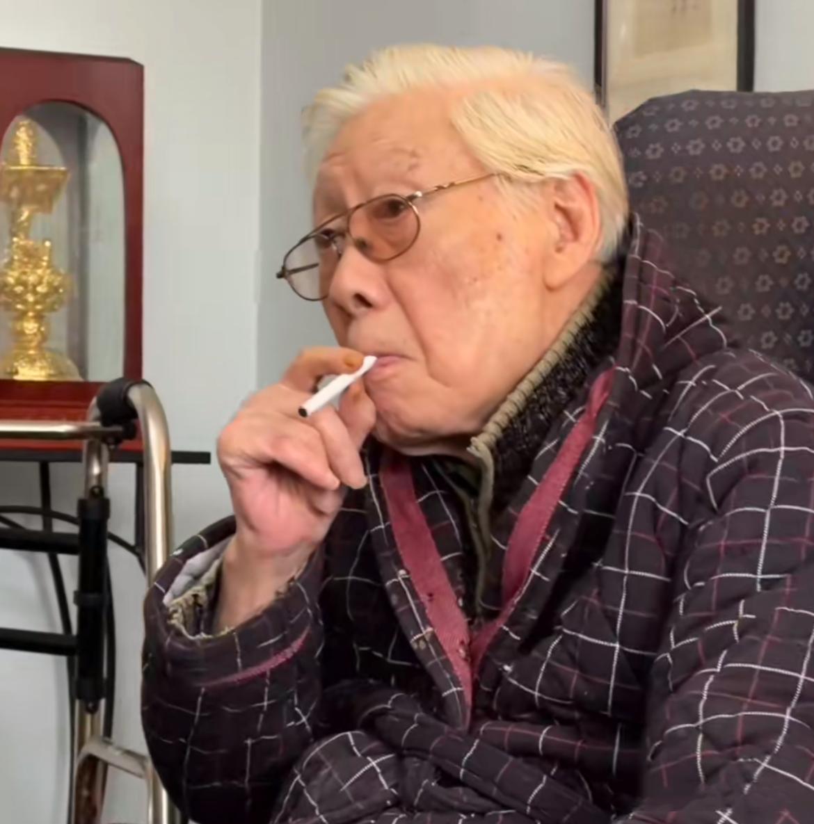 88歲焦晃近況曝光!煙不離手衣服佈滿了洞,小30歲三婚妻子罕露面