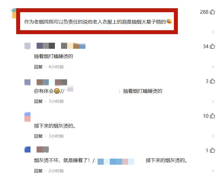 很多網友笑言這都是抽菸燙的。