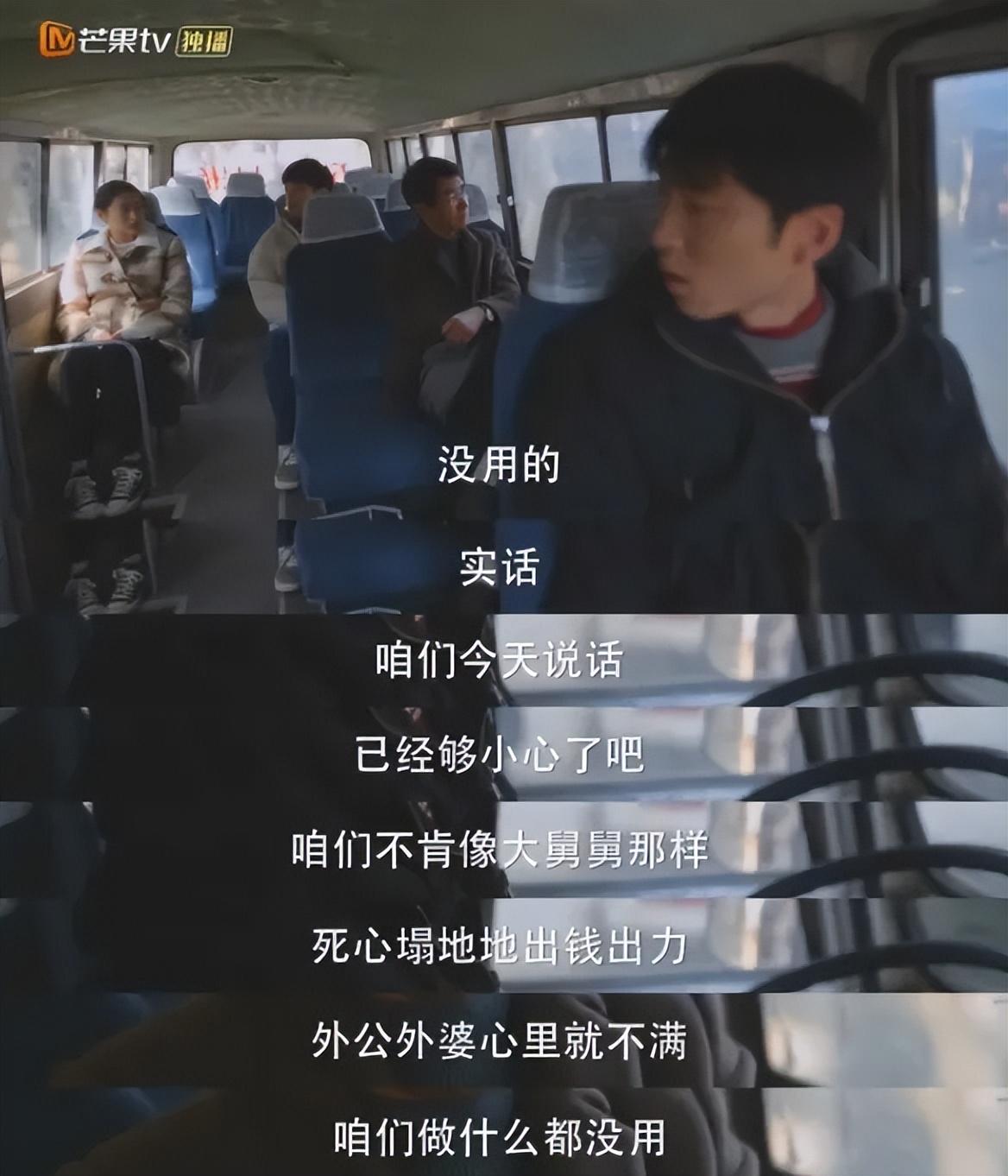 拒絕阿公阿婆二舅舅,圖南、筱婷兩個在車上反省,鵬飛不內耗,擺明了說“沒用的”。