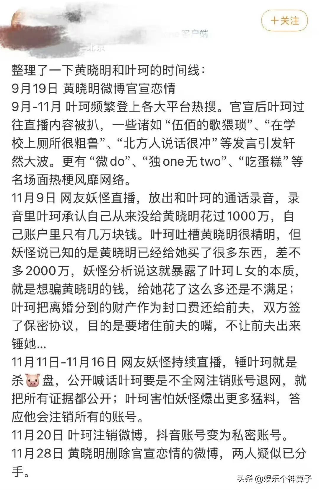 有博主整理了黃曉明與葉可戀情的時間線,以及期間女友的各種發言,還有網上的各種爆料,這麼一看,也真的是難爲曉明哥了,畢竟,能夠忍耐這麼久。