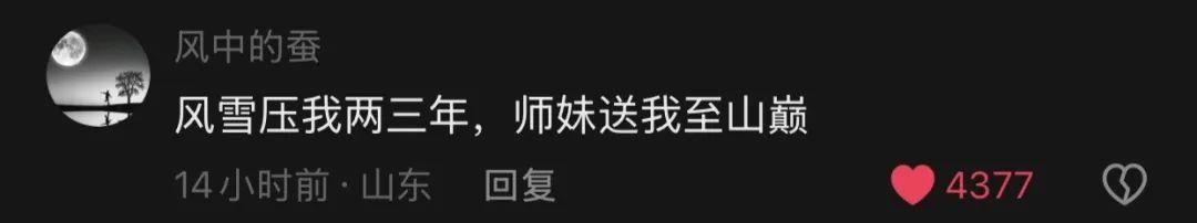 真的是,風雪壓我兩三年,師妹送我至山巔。