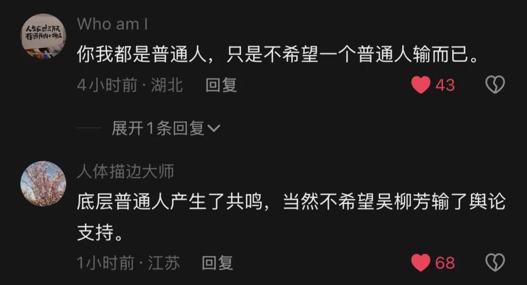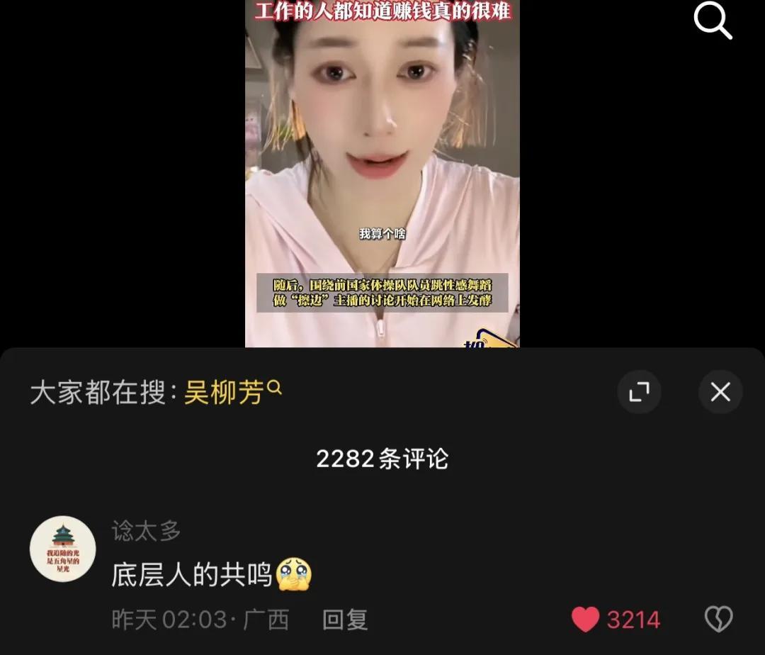 然而最近,她在吳柳芳視頻下的一句評論,主動掀起了這場風波: