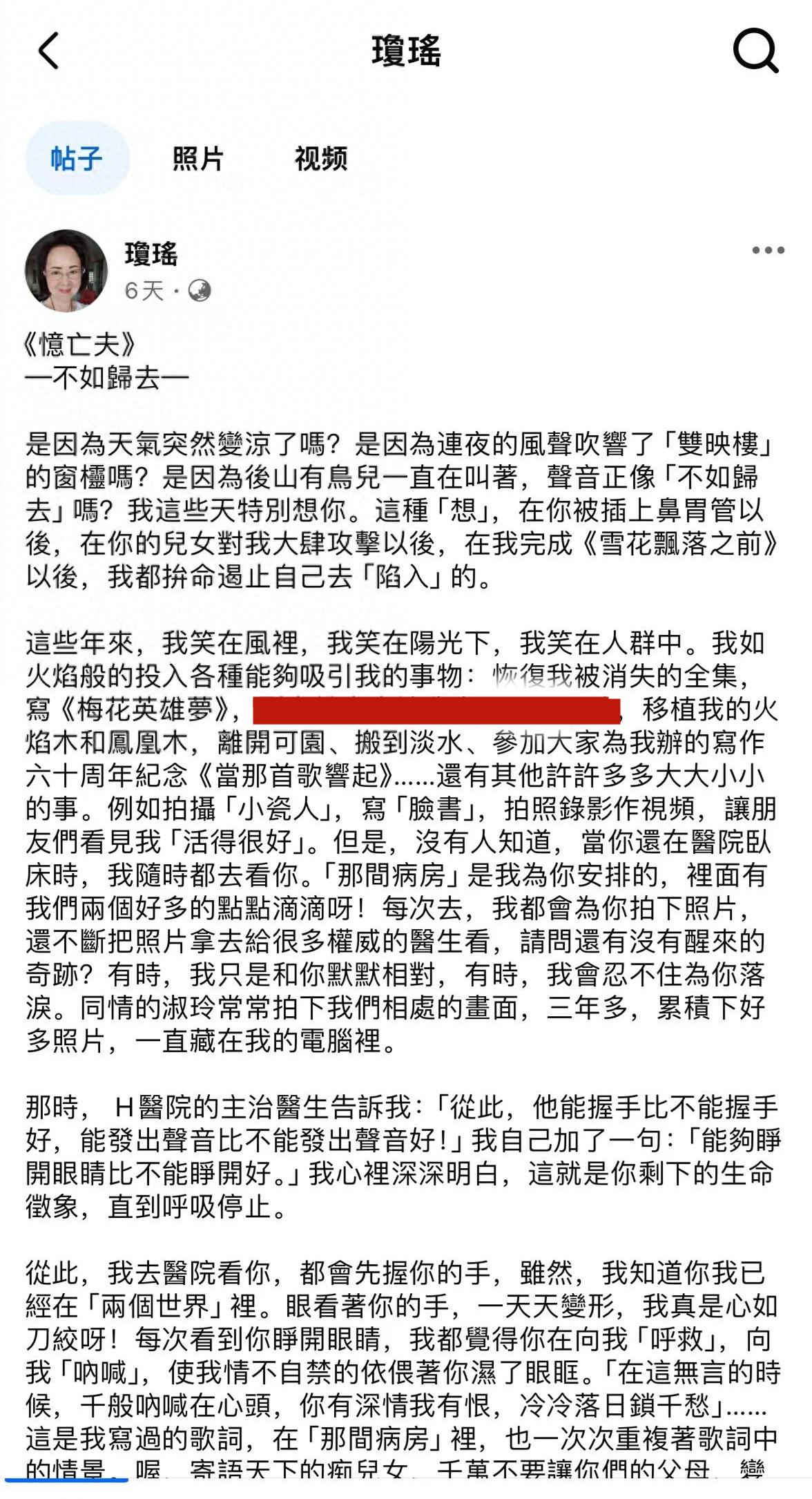 目前,瓊瑤的遺書已經由親友在網絡上代爲發佈。