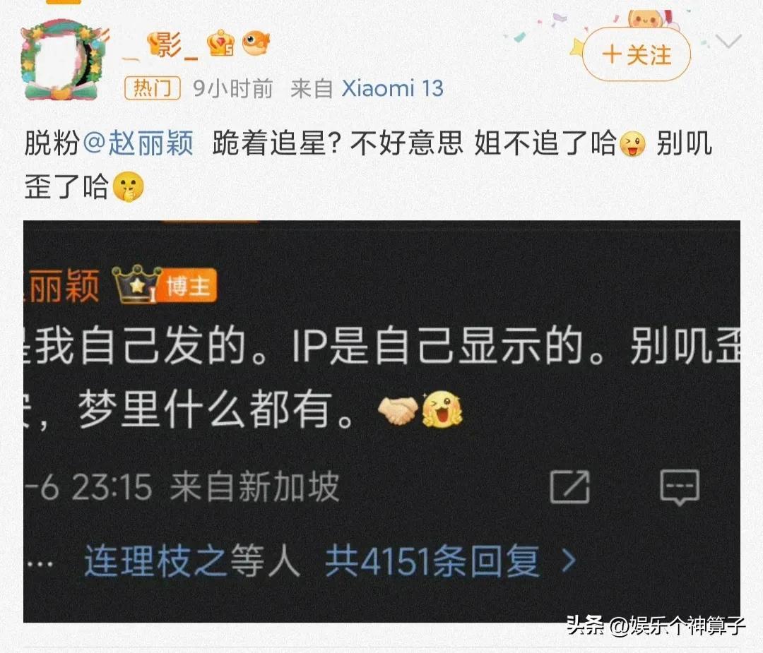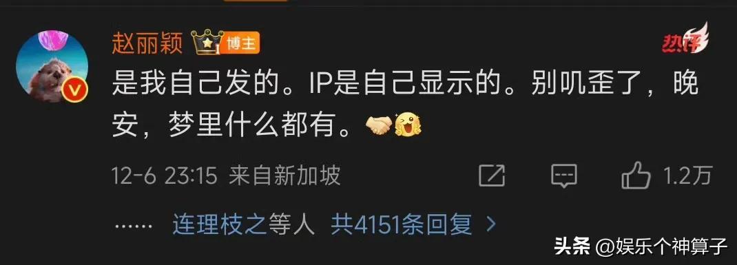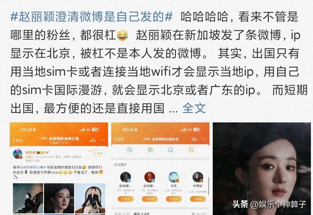 然而,又有粉絲髮現趙麗穎社交賬號的ip地址顯示並不在新加坡,因此質疑並非本人發文回應,敷衍了事,沒有誠意。