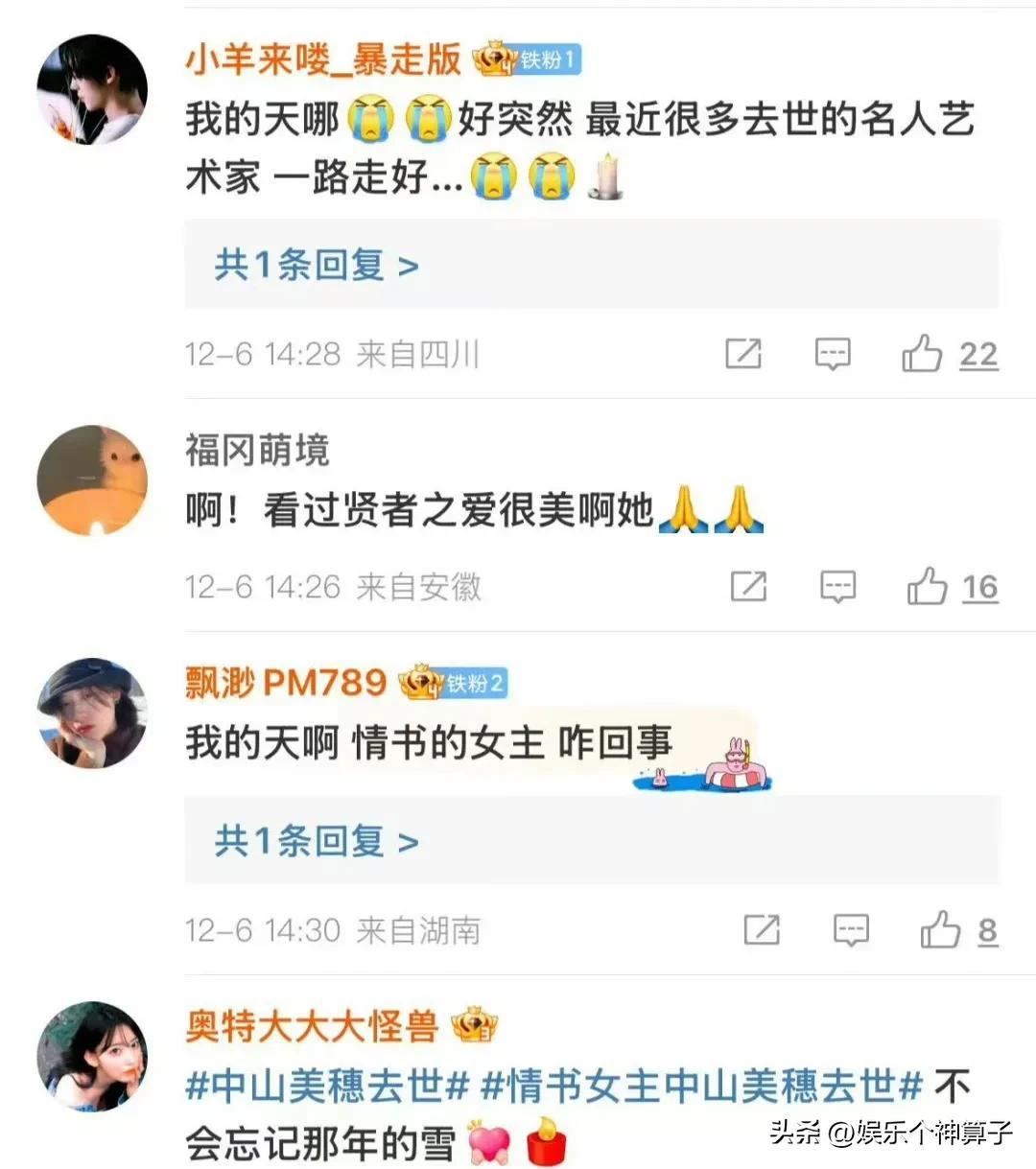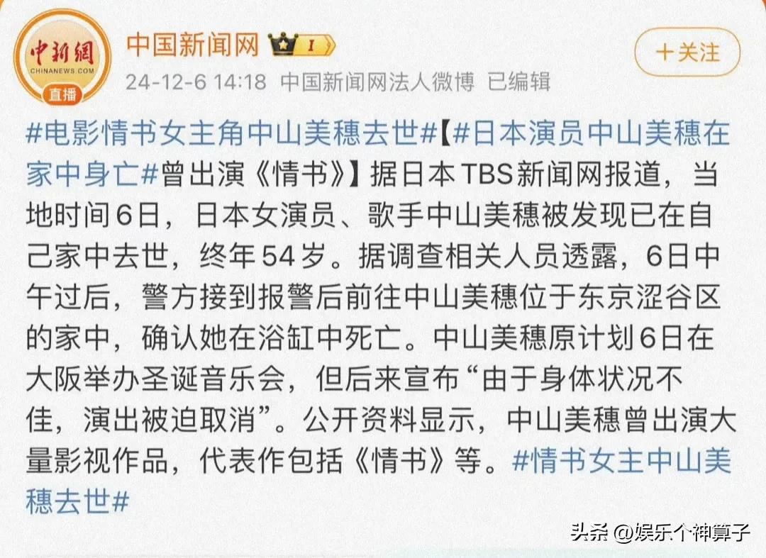 12月6日,據媒體報道,54歲女演員中山美穗去世,消息一出,網上一片譁然,網友十分驚訝,紛紛表示難以置信,太突然了,瞬間回憶起影片中的經典片段,直呼:藤井樹,我的白月光!