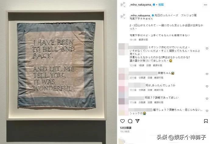 就在中山美穗去世的前一日(12月5日),還在社交平臺發文,並曬出一張觀看展覽時拍下的照片,稱:“我曾經歷過地獄般的煎熬,但讓我告訴你,那是一段奇妙的旅程”!