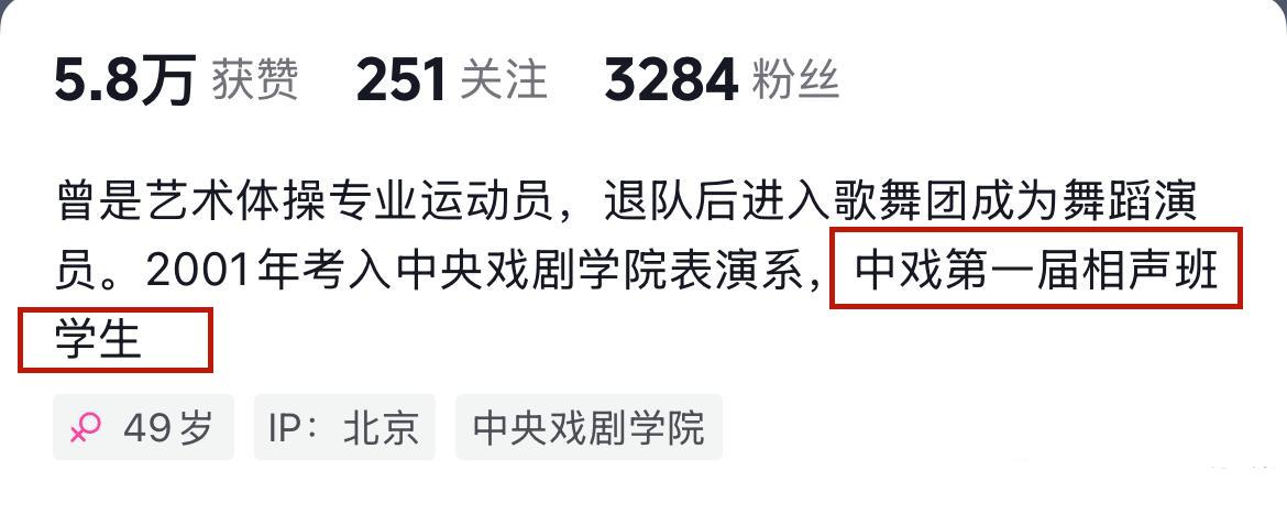 從簡介中可知,該網友曾是體操運動員,後來加入歌舞團成爲舞蹈演員,她還是中戲第一屆相聲班學生。