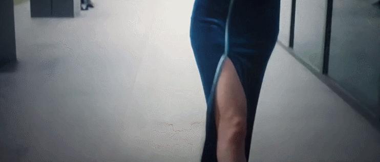 克拉拉一襲紅裙,在地下停車場上演經典的“夢露捂裙”名場面。