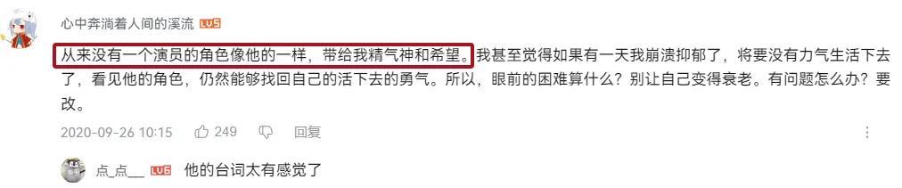 從來沒有一個演員的角色像他的一樣,帶給我精氣神和希望。