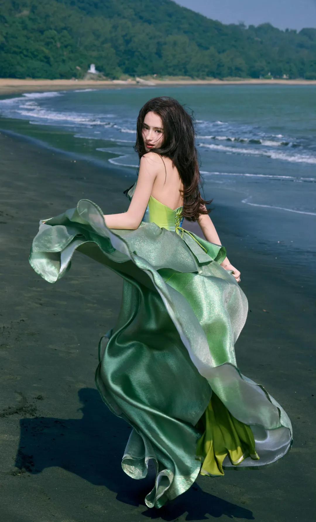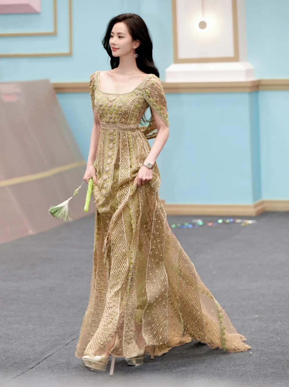 紅毯上穿了一身ES的綠色高定,手拿竹笛,宛如竹中仙,氣質一騎絕塵。