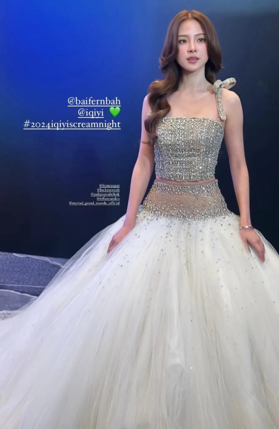 “小水”平採娜選了一條甜美風的蓬蓬薄紗公主裙,不過和常見的風格有些不同,多了個露腰的設計。