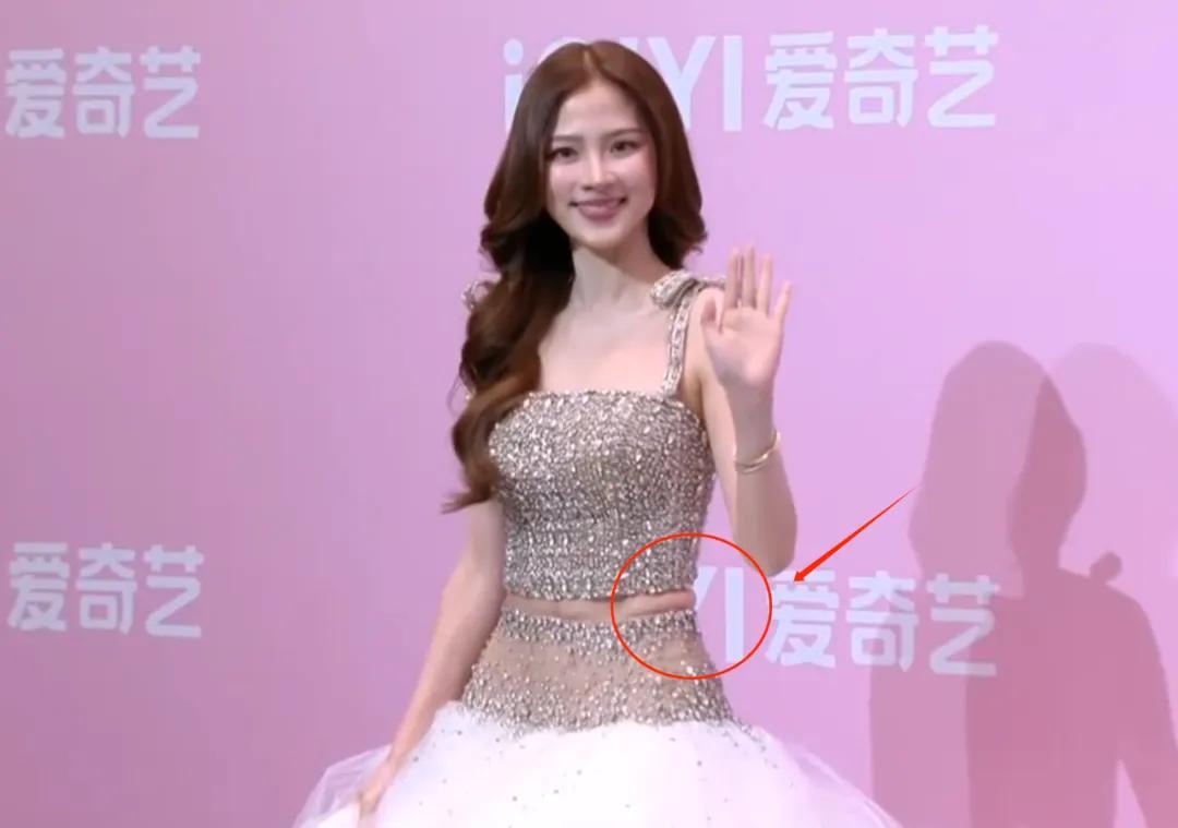 也就是這個設計成了一個尷尬的細節,可以看到她公主裙腰部小小鏤空的地方,贅肉明顯。
