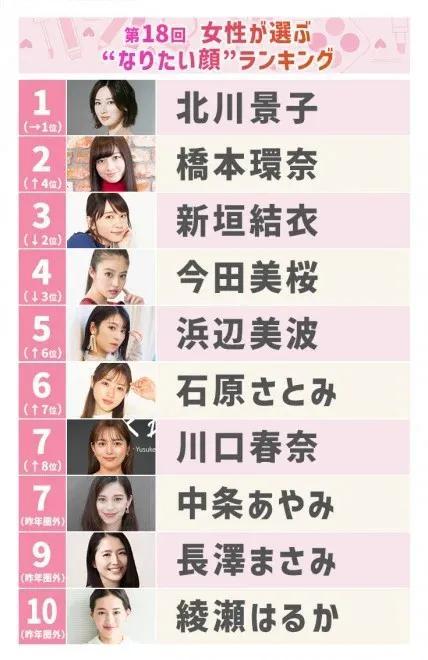 一年一度最受關注的日本最美女星榜單新鮮出爐了!