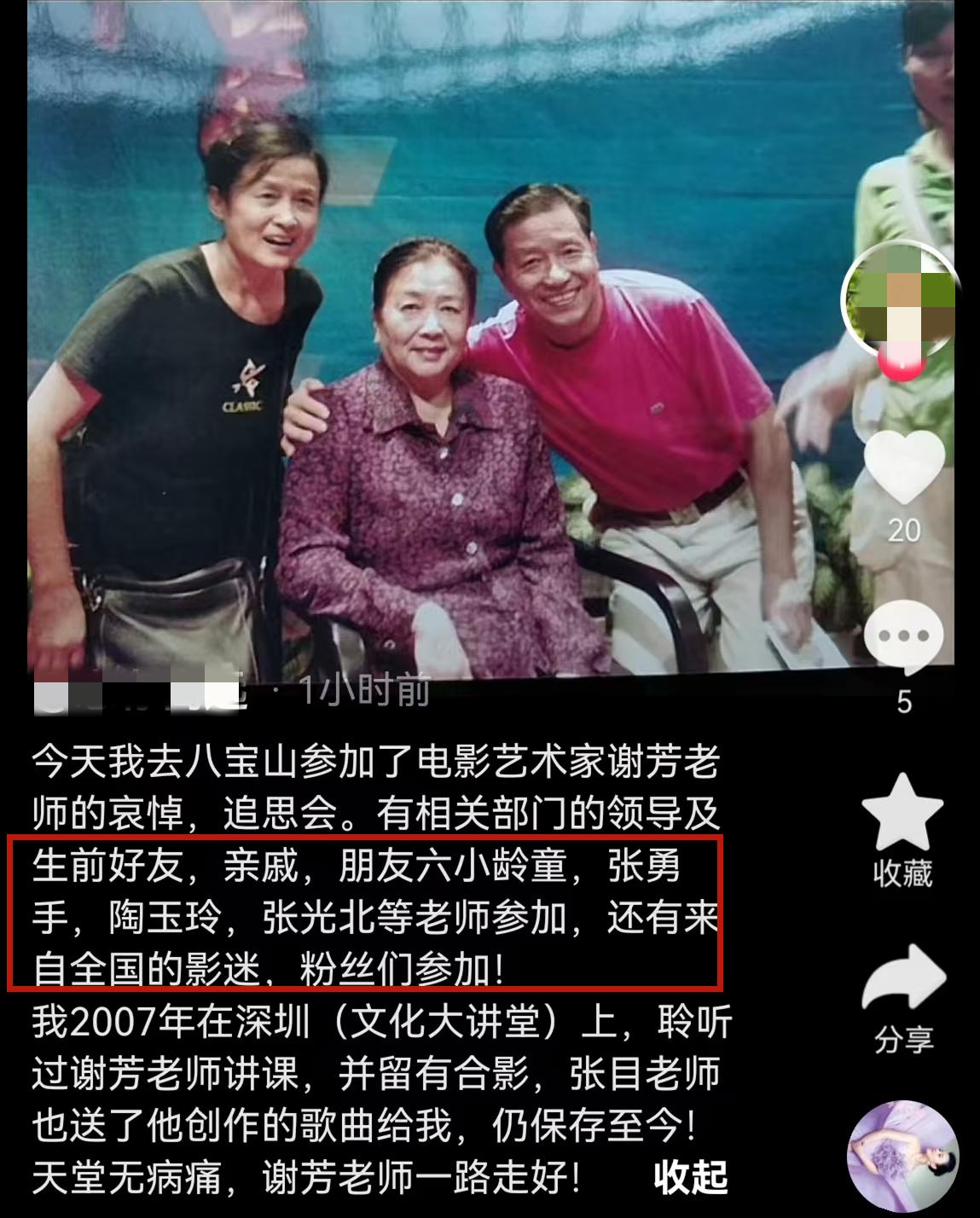 還有網友爆料稱陶玉玲、張光北也來到了現場送謝芳最後一程。