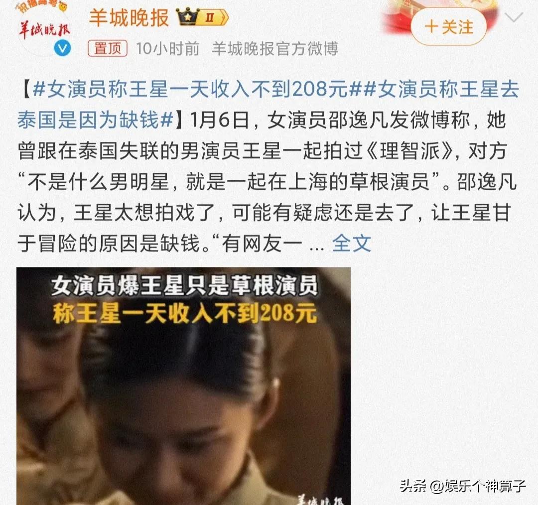 看到一位演員爆料王星就是一個草根藝人,沒什麼名氣,一天的收入有時候還不到208元,真的太想拍戲了,不然,也不會這樣輕易被騙。