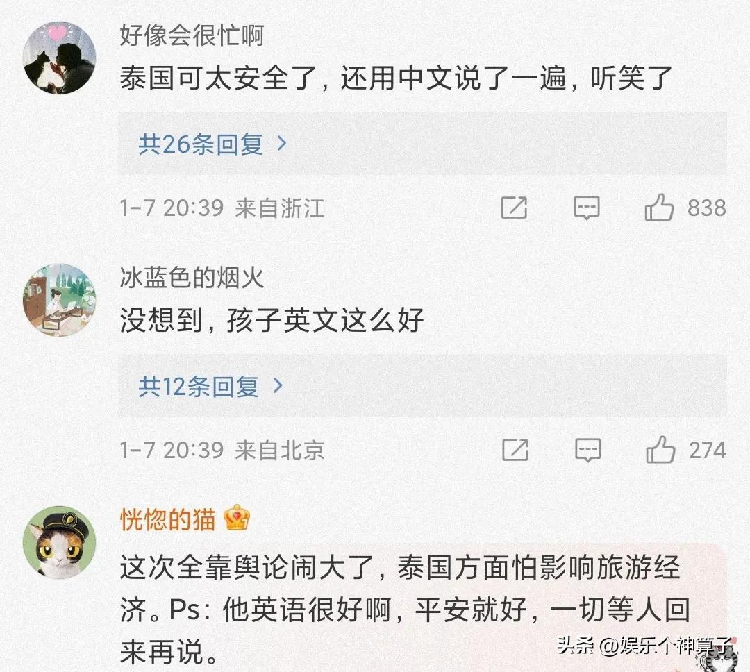 也有人覺得,畢竟這件事鬧的很大,王星這樣說,也是談判提到放人都條件吧,泰國也怕影響到旅遊業,可以理解,能安全回來,比什麼都重要。