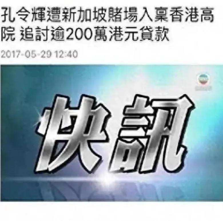 2017年5月,媒體曝出孔令輝因在新加坡賭場欠資,被告上了法院,追討200多萬元港幣貸款。