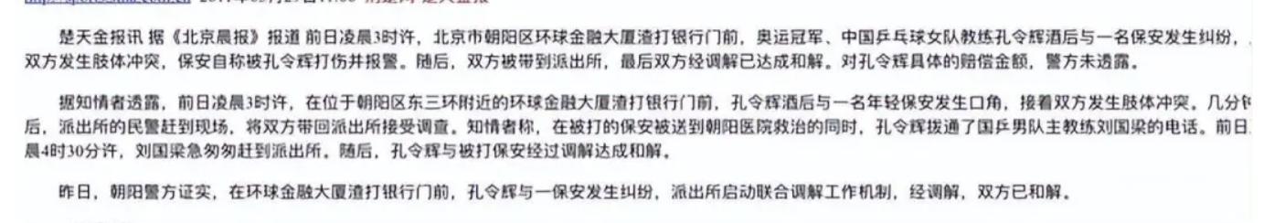 5年後,孔令輝又因爲喝酒闖了禍,他和一個酒店保安發生了矛盾,兩人互毆了一頓。