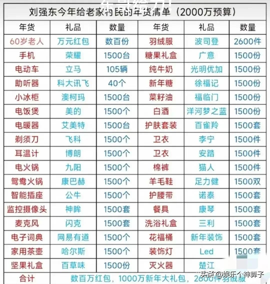 網上列出了年貨清單,幾乎與拜年信中提到的一致,羽絨服、手機、電動車、純牛奶、電子詞典……等,話說,這真的是考慮的各個年齡段,喫的,穿的,學的,用的,一應俱全,價值幾千萬,這可不是小數目。