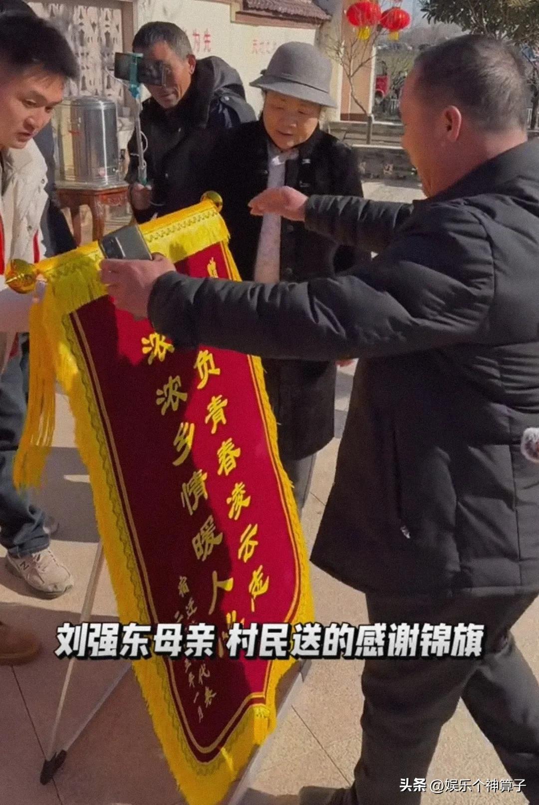 村民給劉強東送錦旗,發年貨最後一天好熱鬧,母親罕見摘下口罩