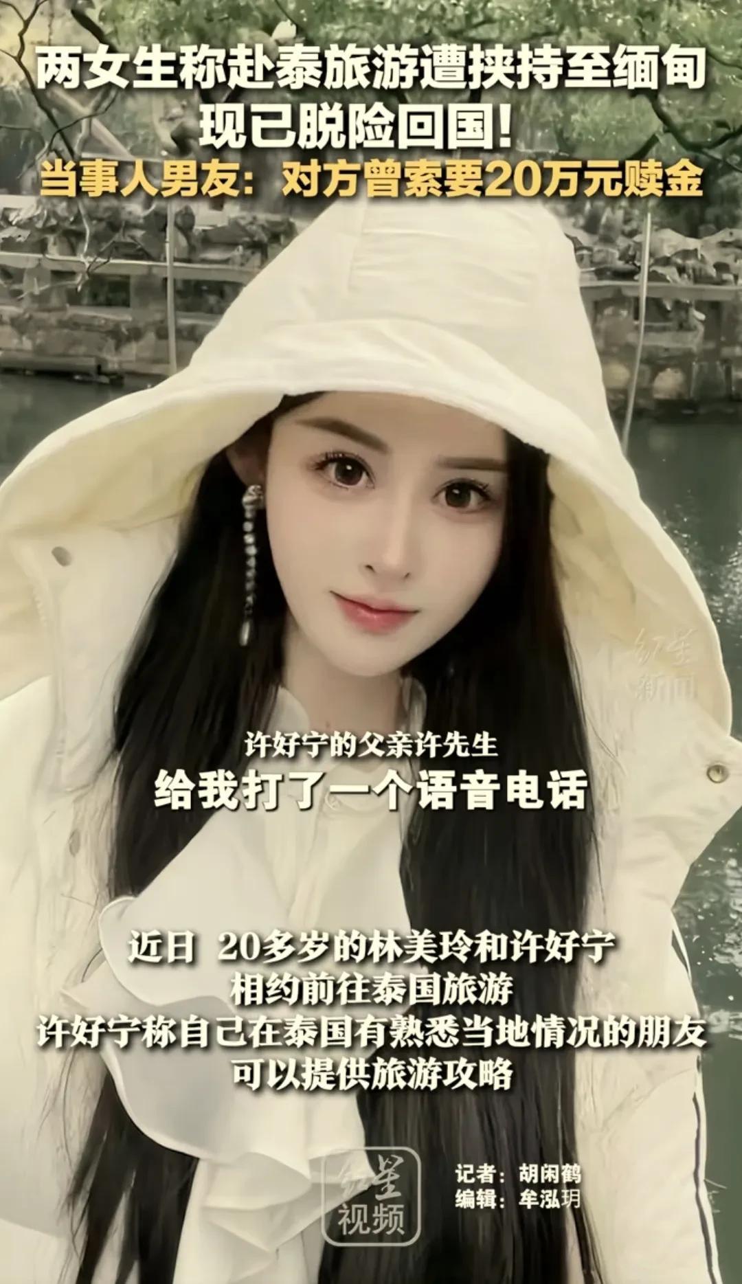 好在她們被成功解救了,於1月10日回到了國內,許好寧的父親向媒體證實了女兒已經回國的消息。