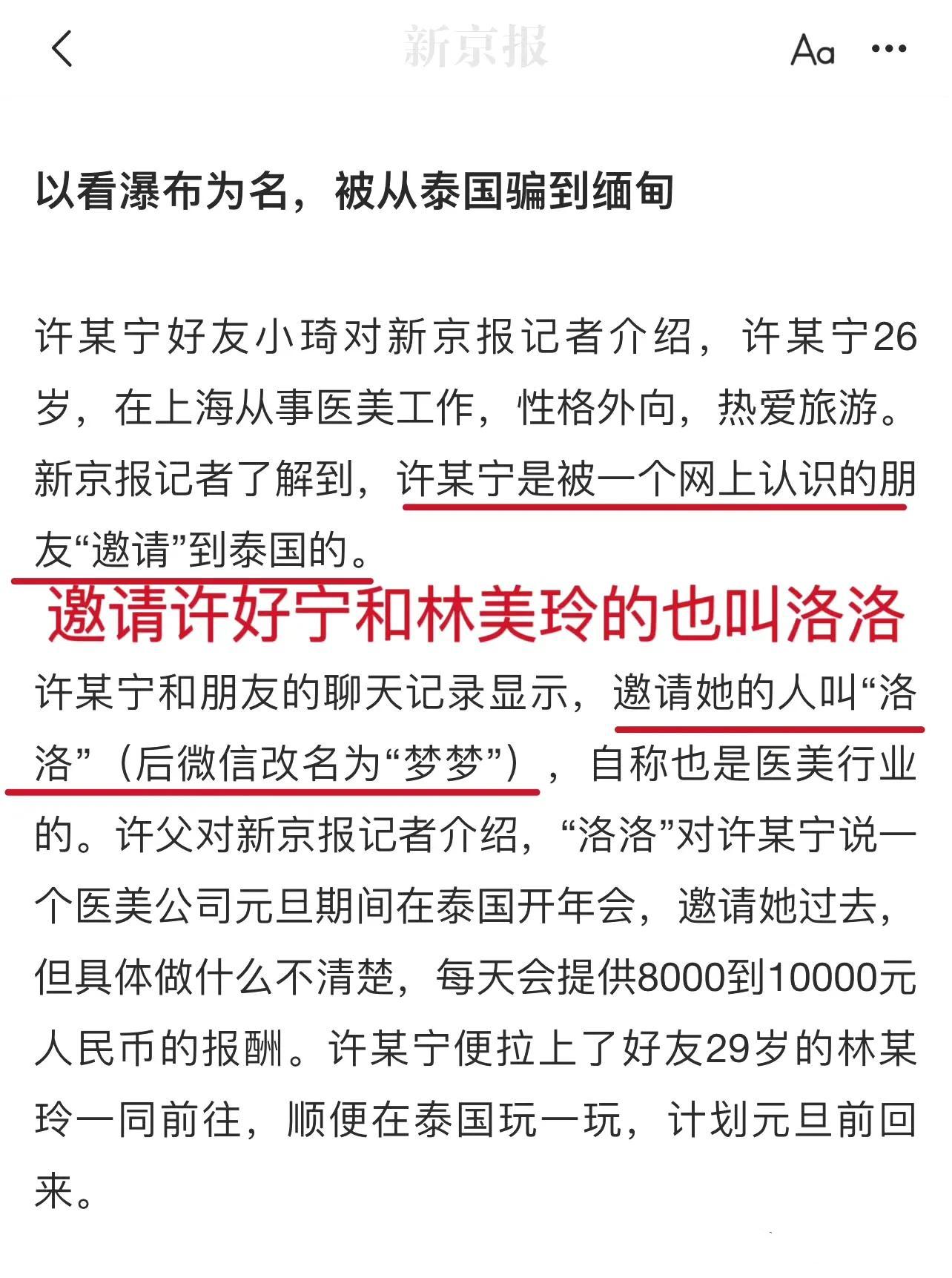 許好寧和林美玲被詐騙園區控制之後,林美玲男友接受媒體採訪時透露林美玲和許好寧是在12月27日下午被帶到了妙瓦底大象園區,對方提出要20萬贖金。