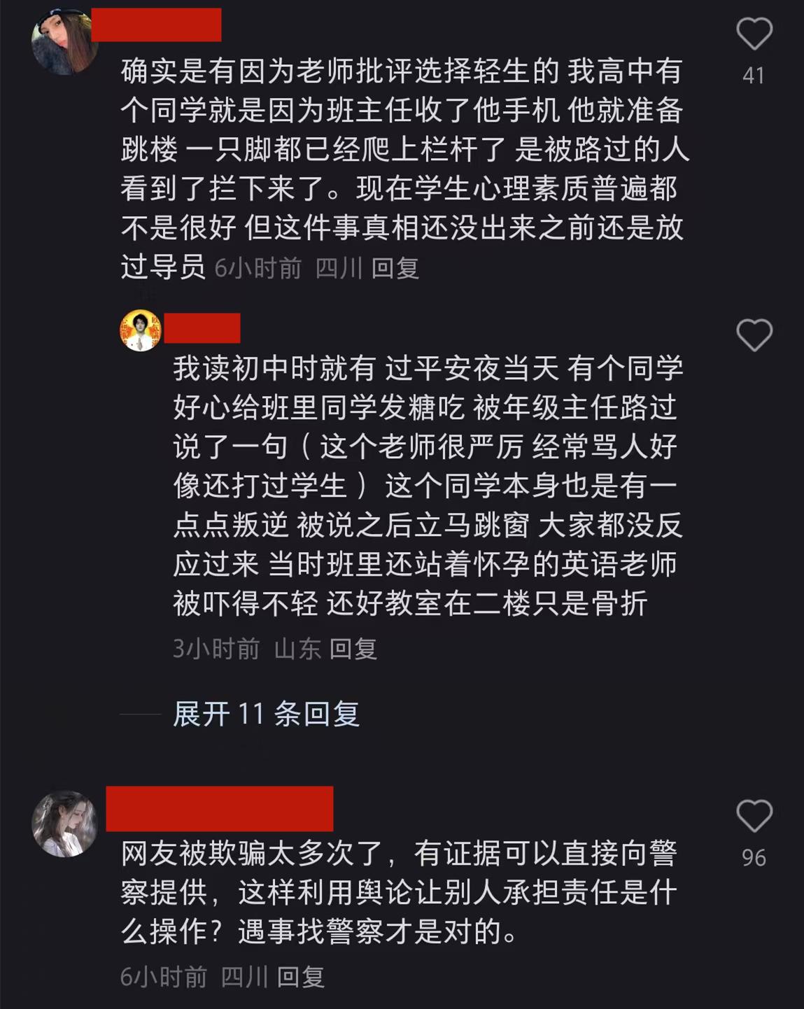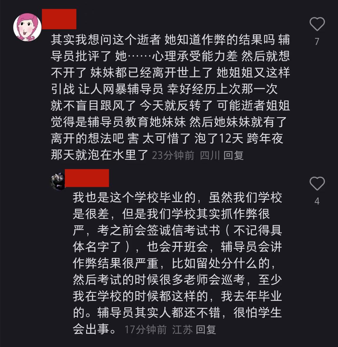 對於她的輕生之舉,很多網友都說她太傻了,在人生路上考試作弊不是什麼天塌了的大事,考不上專升本也不是什麼天塌的大事,更何況即使作弊了,也不一定真的能影響到專升本。